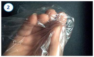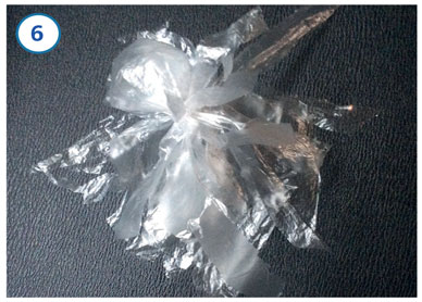 Recortar un cuadrado de la bolsa de plástico En el centro hacer un pequeño globo