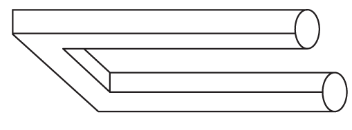 - La tercera pieza corresponde a un dibujo que está “mal hecho”. Del lado derecho de la imagen “salen” dos piezas que del lado izquierdo se conectan como si fueran tres. Bien dibujada, la imagen debería verse así: