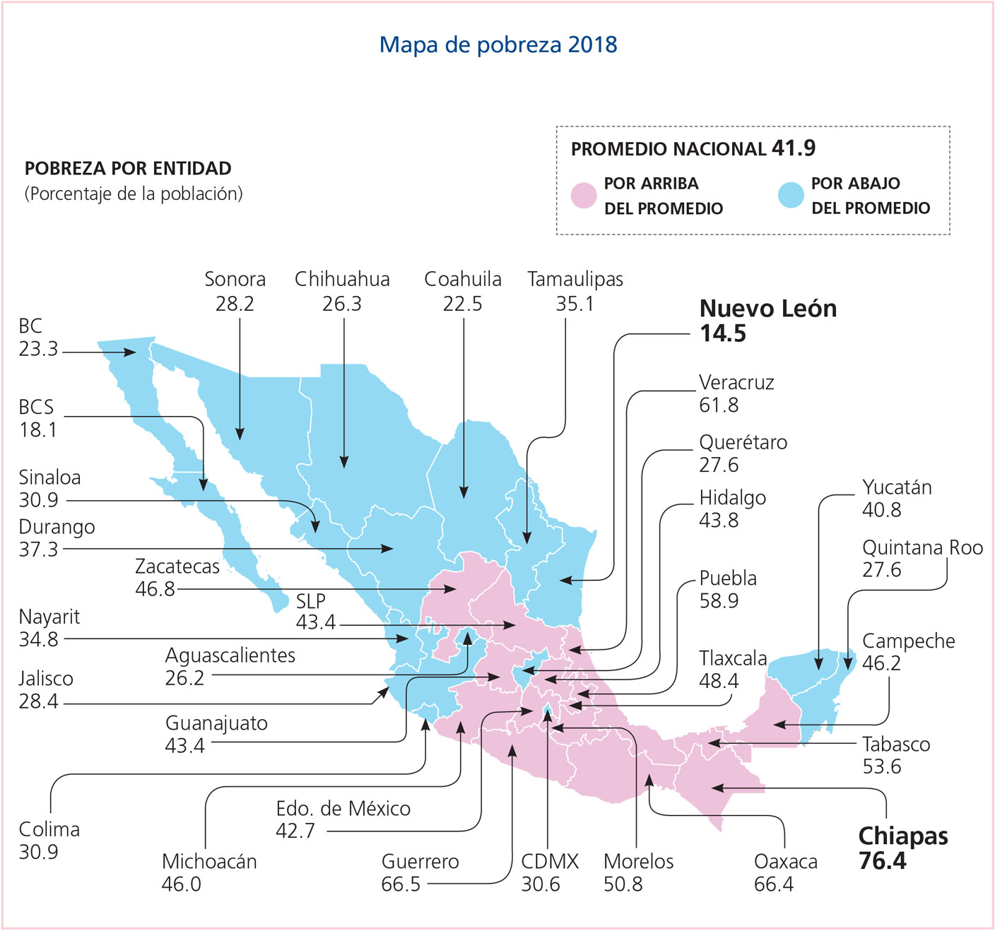 Fuente: Credit Suisse Global Wealth Databook 2018. China es el país que tiene la mayor desigualdad relativa[5] –más riqueza en menos manos– y, sin embargo, ha sacado a más de 100 millones de personas de la pobreza. Quien tiene mayor desigualdad absoluta –más cantidad de dinero concentrado en pocas manos–, los Estados Unidos, sólo tiene 12 por ciento de pobreza, concentrada principalmente en nativos indígenas, afroamericanos y latinoamericanos. Pero, además, de los Estados Unidos se envían enormes remesas a México, a la India (casi el doble de lo que recibe México), China, Filipinas y muchos otros países latinoamericanos. Por lo anterior, podemos concluir que la desigualdad no es causa de la pobreza sino al contrario. La razón es que en esos países los ricos invierten muchísimo. Allí los ricos son agentes inversores que producen innovación y empleos mejor pagados; arriesgan su dinero en proyectos de alto nivel: nuevos artefactos e innovación en los ya existentes, sofisticados sistemas de informática e, incluso, vuelos al espacio; pero también en negocios creativos de diversa naturaleza. En México también podemos ver un indicio de ello en los niveles de pobreza estatales. De manera notoria, la menor pobreza está en Nuevo León, con 14 por ciento; estado que tradicionalmente cuenta con grandes empresarios y con una gran cantidad de riqueza en pocas manos, pero con altas inversiones en el estado y fuera de él. En México la desigualdad es notoria, pero es una desigualdad en donde no existe la inversión y, a menudo, duerme en paraísos fiscales cuando son producto de la corrupción política y social; así afirma un investigador acerca de los más ricos de Latinoamérica: El capital está limitado, y buena parte de lo que hay, no está en las manos de verdaderos empresarios comprometidos con los riesgos y la innovación, pero sí en aquellos especuladores cautelosos quienes prefieren invertir el dinero en bienes raíces y esperan que el crecimiento vegetativo de sus países dé pie al crecimiento de sus propiedades. Éstos no son capitalistas modernos sino terratenientes en la tradición feudal. Pero aún peor es el negociante mercantilista que busca su fortuna a través de las influencias políticas más que competir en el mercado (Montaner, 2000, p. 60).
