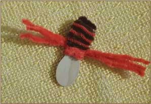 Con ayuda del cuarto limpiapipas, amarrar las patas al cuerpo para formar el tórax como se muestra en la siguiente secuencia de fotografías.