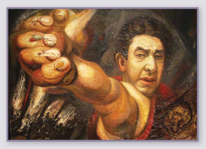 David Alfaro Siqueiros, Autorretrato (El coronelazo), 1945, piroxilina en masonite, 91 x 121 cm, Ciudad de México, Museo Nacional de Arte, Colección Blaisten