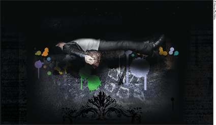 Autorretrato con botarga de cocodrilo. Mixta sobre papel algodón. ![]() Herza Du Valca.