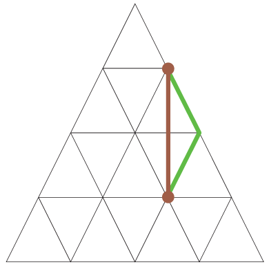 El reto de esta ocasión consiste en encontrar caminos para unir puntos en un tablero triangular como éste: